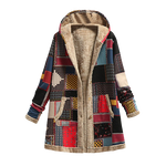 Warme Vintage Winterjas met Capuchon en Patchwork Design