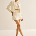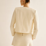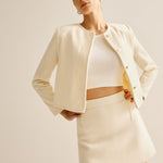 Anja | Stijlvolle Off-White Cropped-Jack met gouden knopen