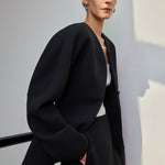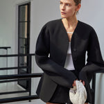 Ontdek deze elegante zwarte blazer die uw garderobe verrijkt met zijn moderne minimalistische ontwerp. De getailleerde blazer heeft asymmetrische knoopdetails die de klassieke snit een unieke twist geven. Perfect voor zakelijke gelegenheden, avondevents of stijlvolle dagelijkse looks, biedt deze blazer veelzijdigheid en tijdloze elegantie. Winkel nu dit onmisbare kledingstuk dat modern design met verfijnde stijl combineert.