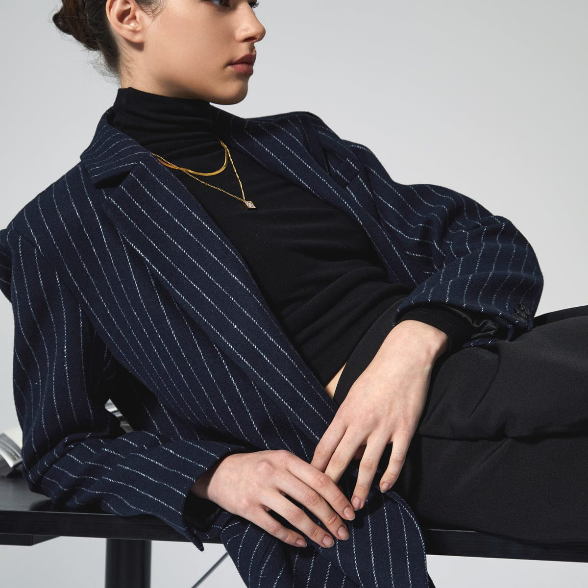 Luise | Klassieke Marineblauwe Nadelstrepen Blazer voor Dames