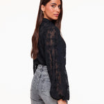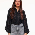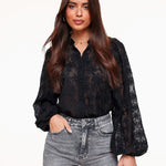 Elegante transparante blouse met bloemenpatroon – Zwart