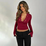 Roxana | Langarm T-shirt met Kant – Vrouwelijke Elegant voor Elke Gelegenheid