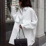 Witte oversized shirtjurk met strepen – Streetstyle-look