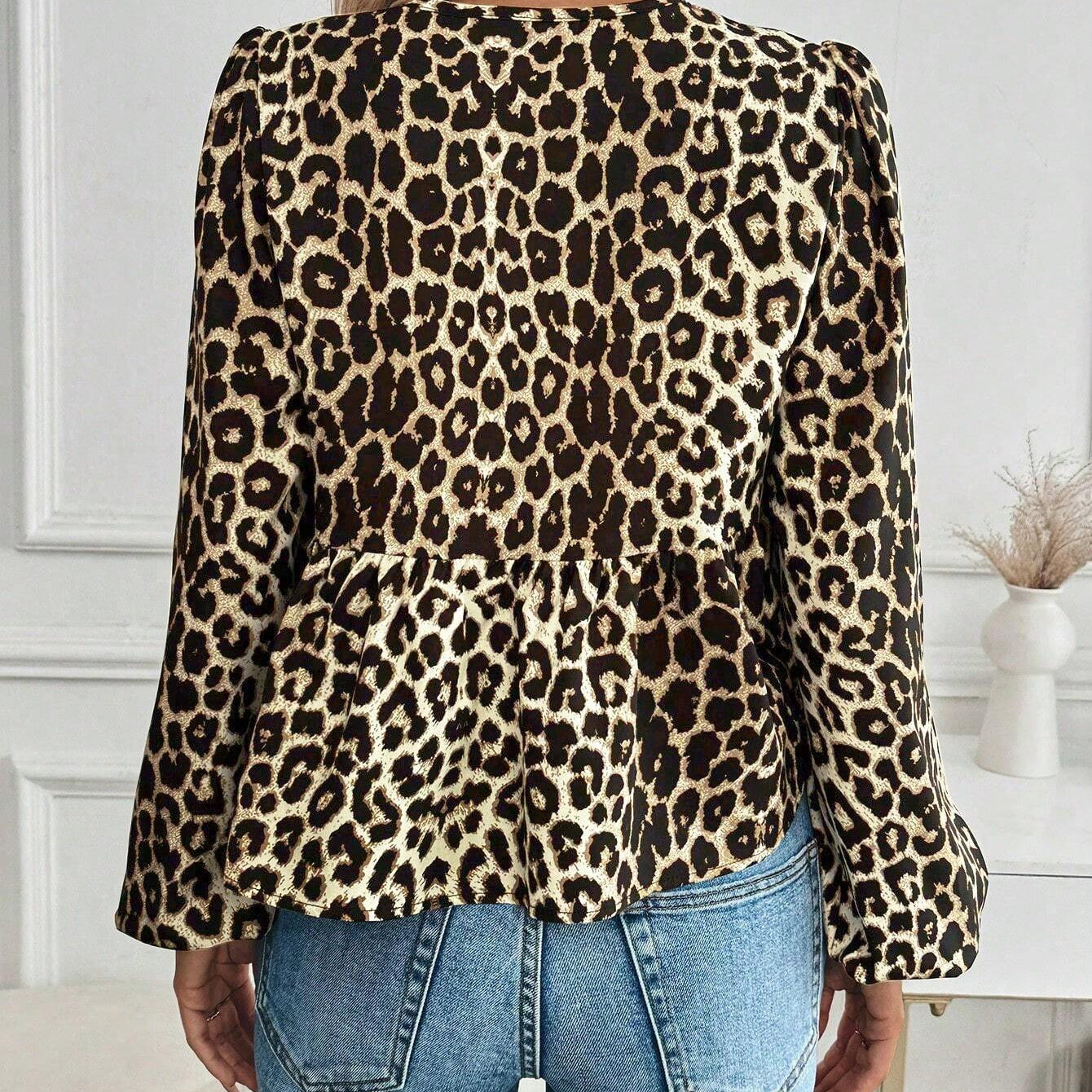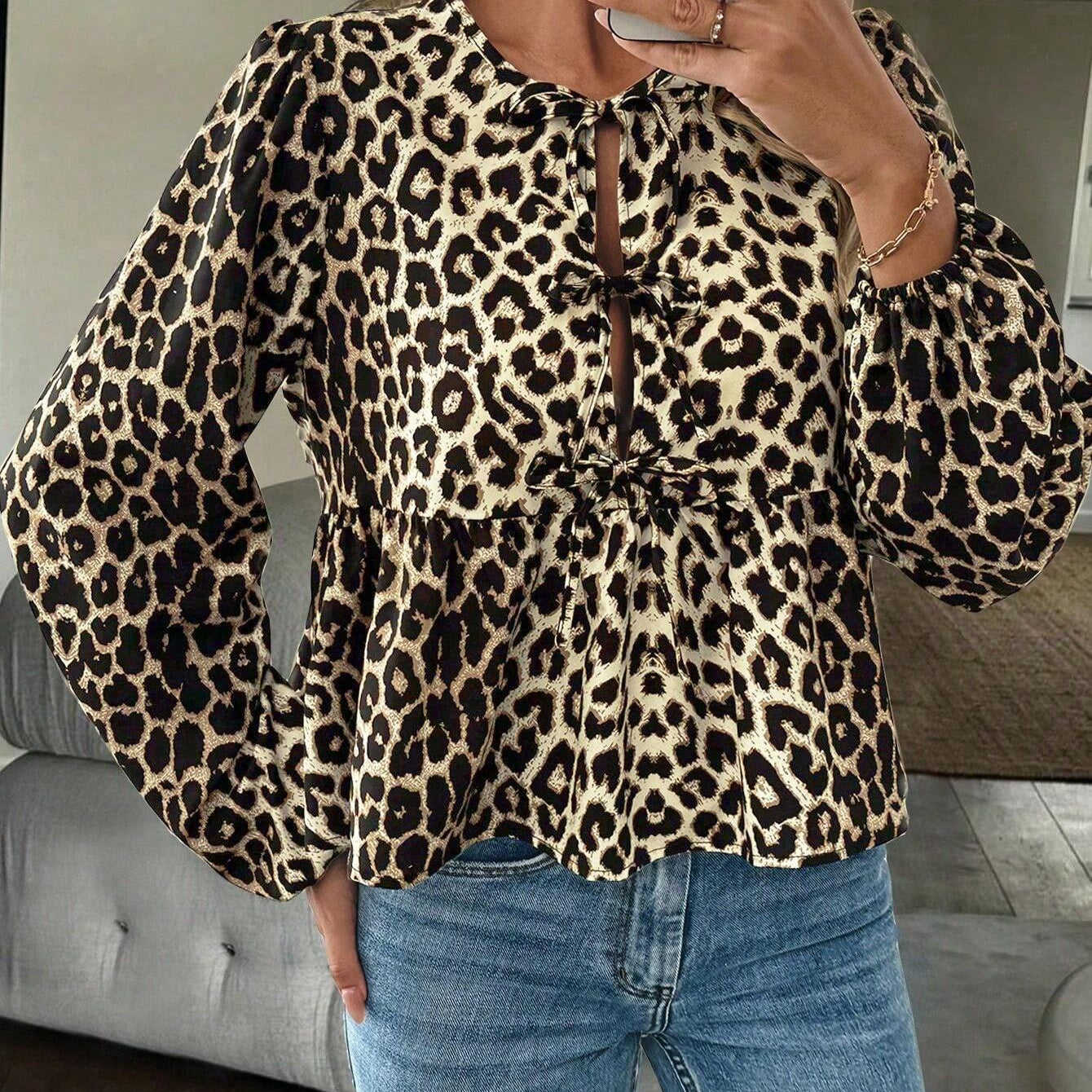 Leopardprint Damesblouse met Strikdetail – Vrouwelijk, Opvallend & Trendbewust
