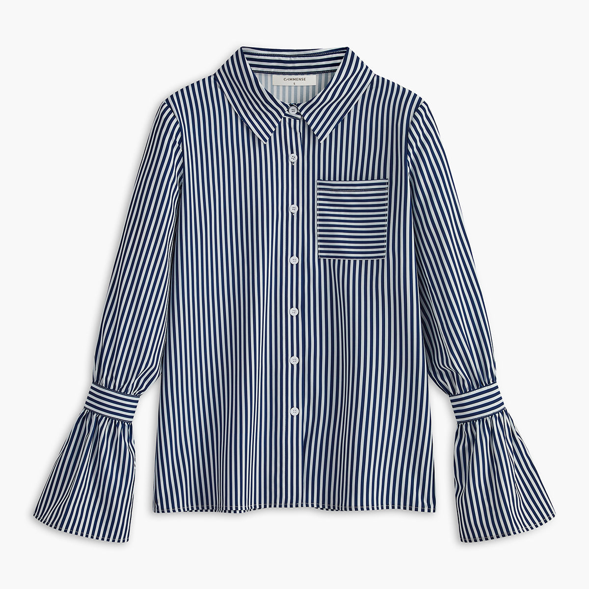 Gestreepte Damesblouse in Marineblauw met Uitlopende Mouwen