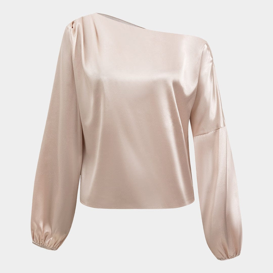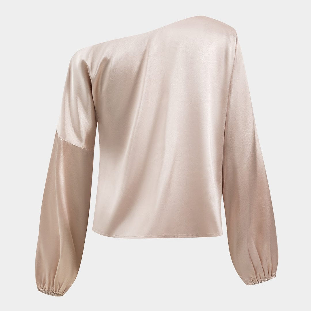 Astrid | Ballonmouwen Asymmetrische One-Shoulder Satijnen Blouse