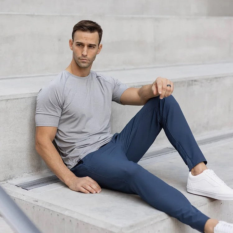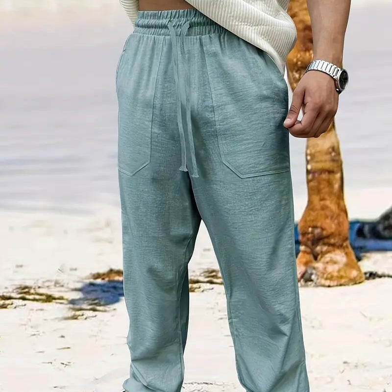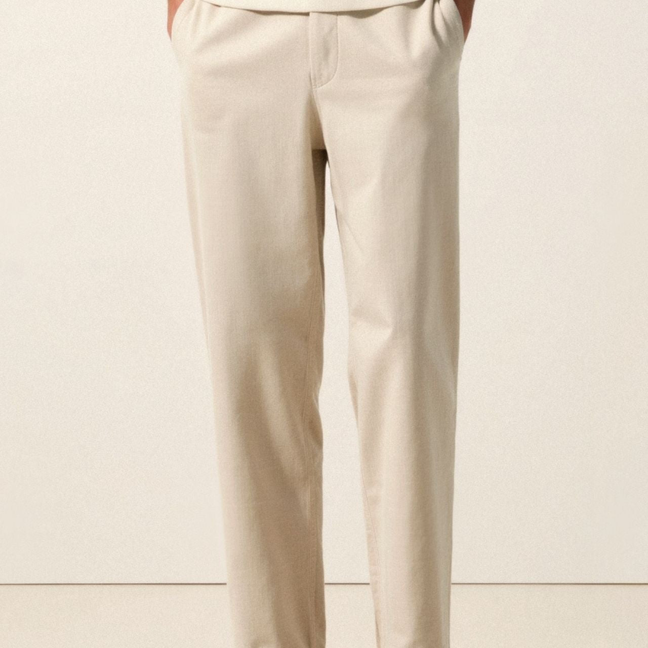 Killian | Beige herenbroek met elastische tailleband en knoopsluiting
