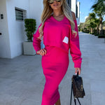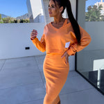 Omarm je innerlijke elegantie met een modieuze midi-jurk die naadloos combineert met een chique sweatshirt. Deze set laat niet alleen je natuurlijke lichaam beter uitkomen, maar houdt je ook comfortabel in elke omgeving. Voel je zelfverzekerd en stijlvol, waar je ook gaat of staat.