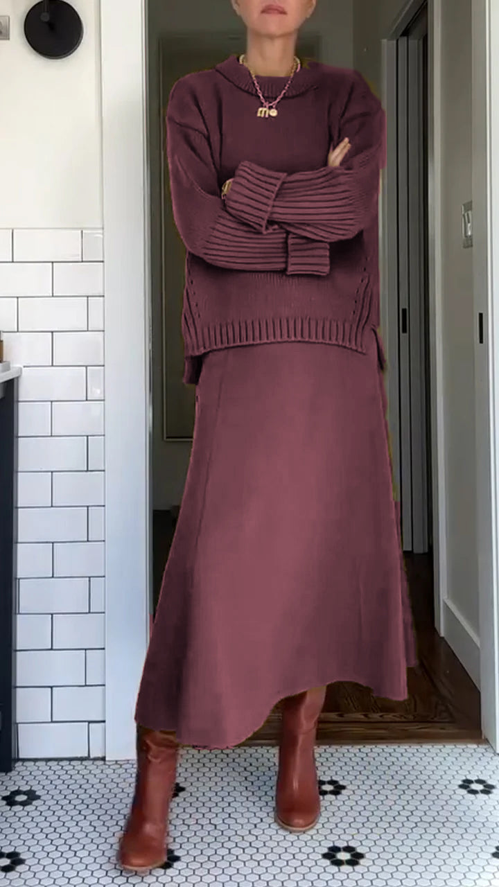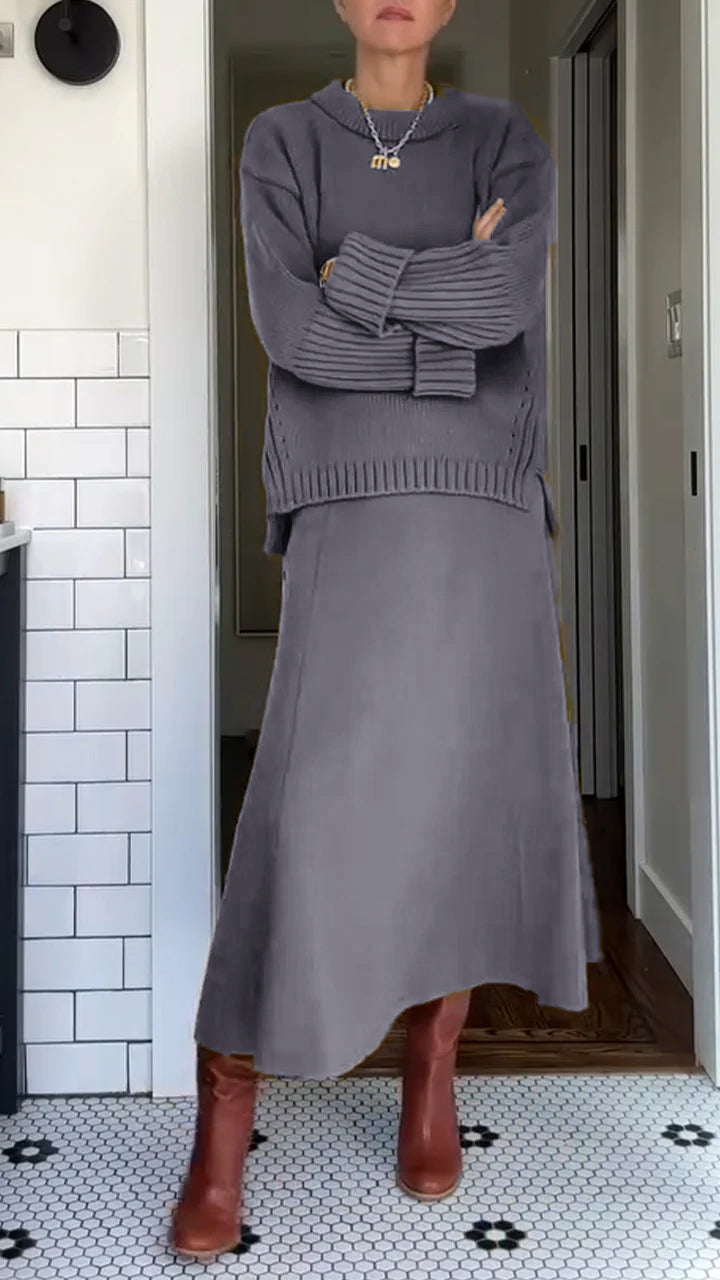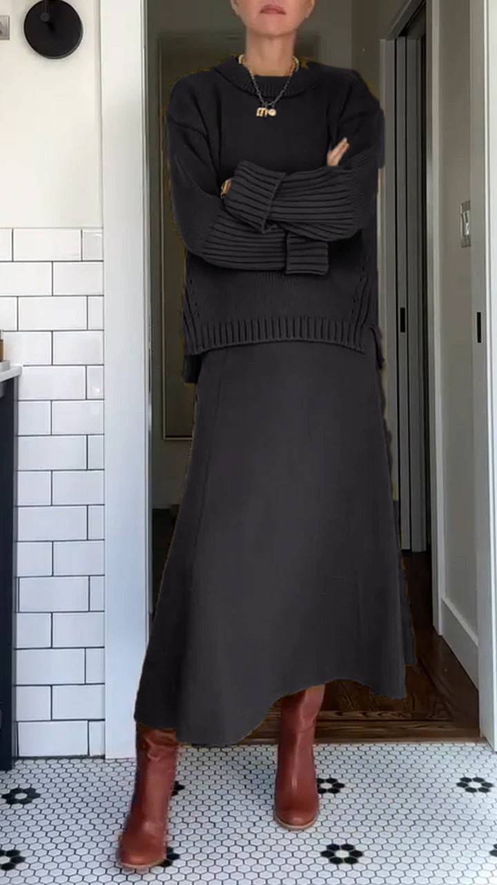 ✔️ Modieus set bestaande uit een lange trui en een vloeiende maxi rok