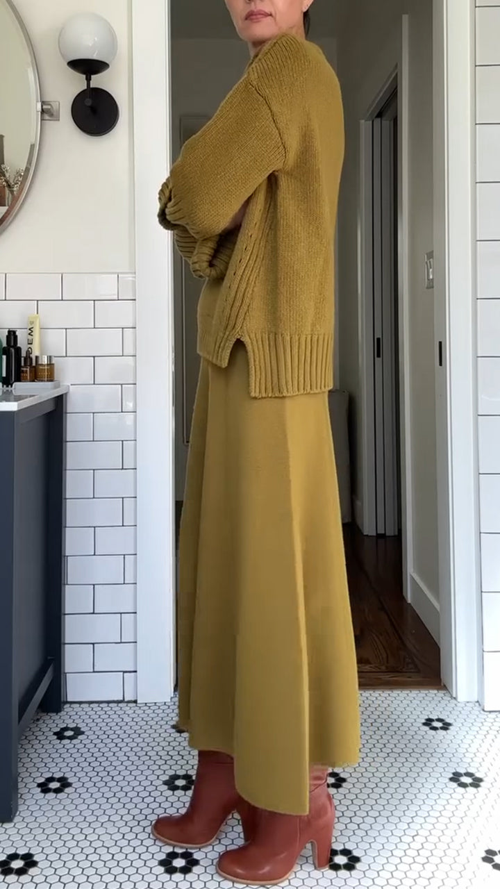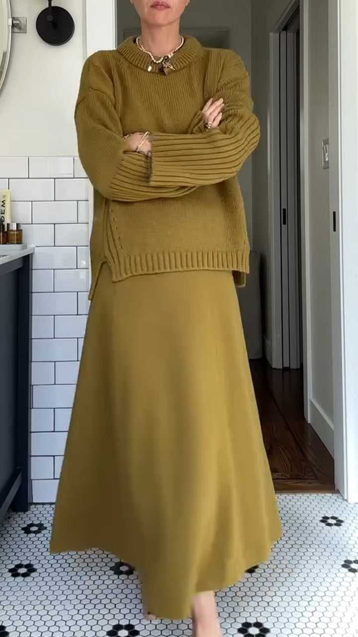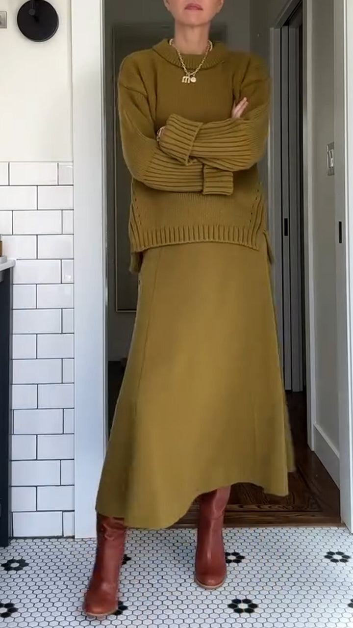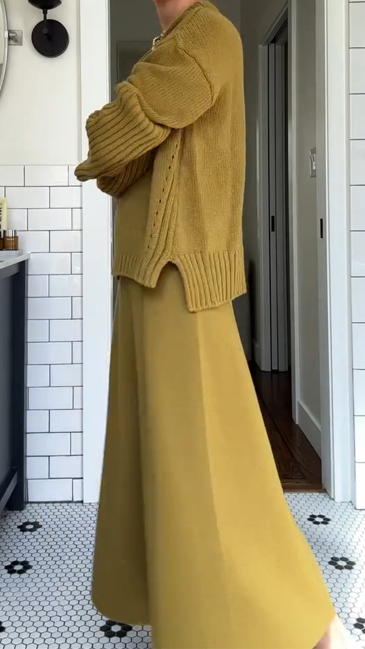 ✔️ Modieus set bestaande uit een lange trui en een vloeiende maxi rok