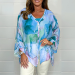 Deze blouse met aquarelprint en luchtige pasvorm is perfect voor warme dagen en vakanties.