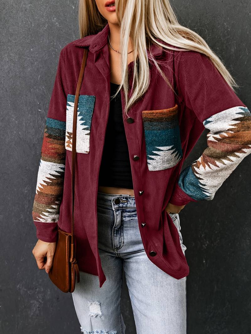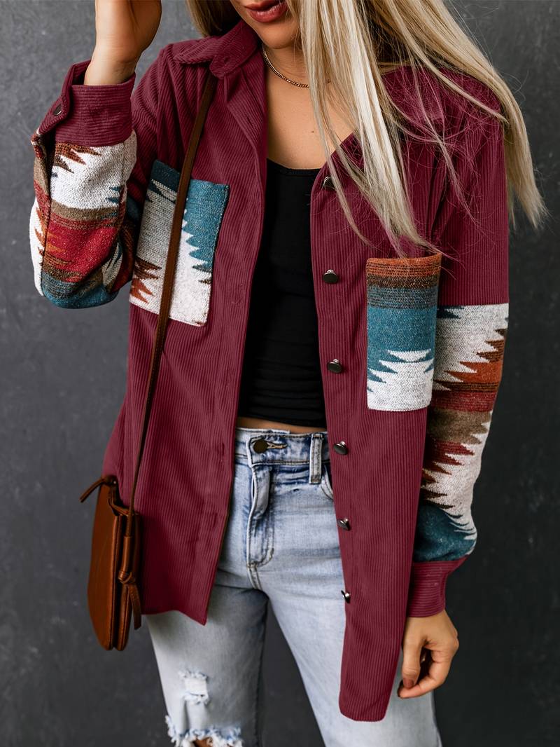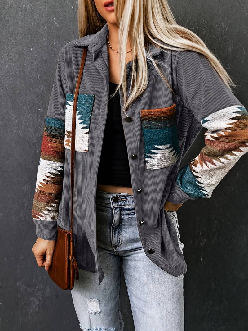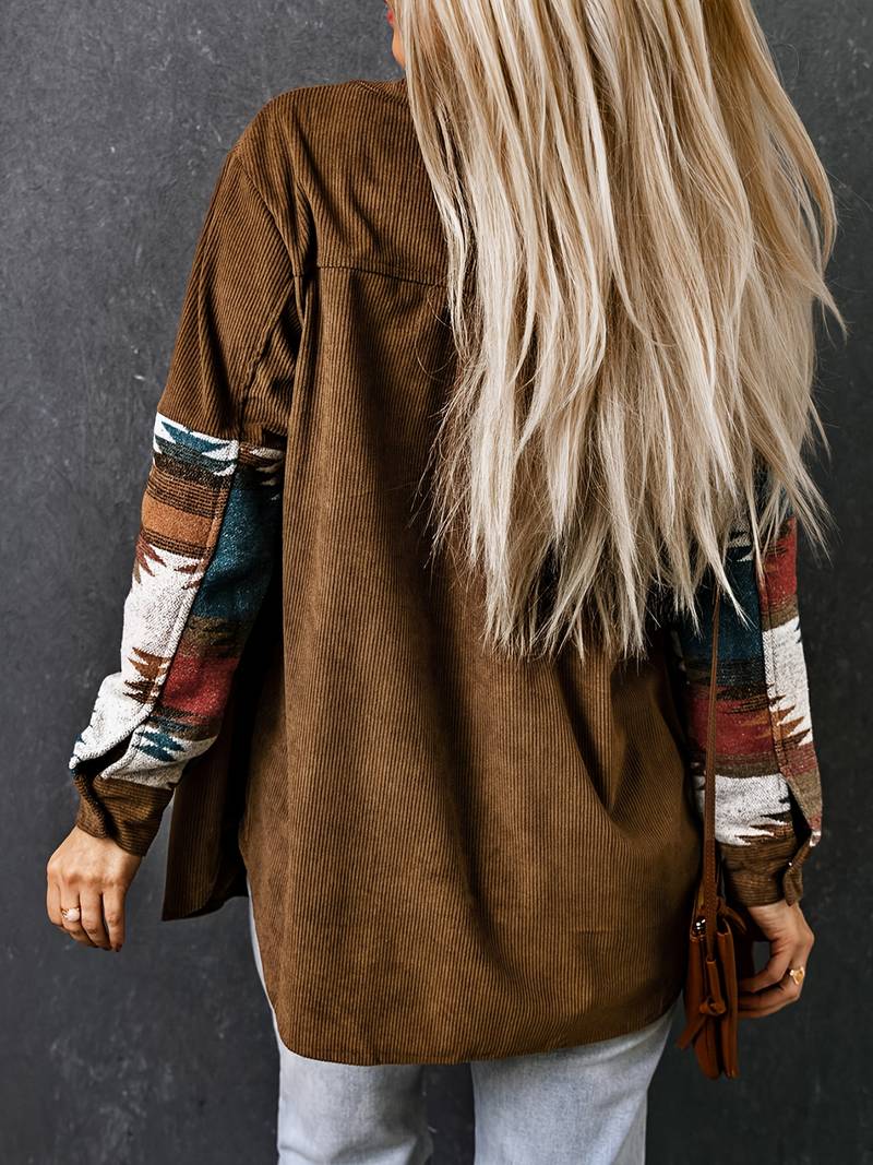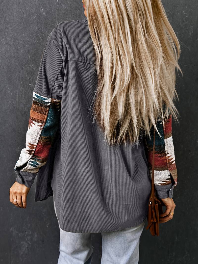 Deze casual jas met etnisch geïnspireerde print op de mouwen voegt een kleurrijke twist toe aan elke outfit. De zachte stof en losse pasvorm maken hem perfect voor een stijlvolle maar ontspannen look.