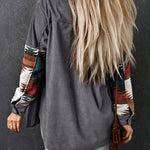 • Details: Effen body met kleurrijke, etnische prints op de mouwen