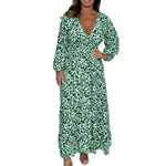 Deze jurk, die vakkundig is gemaakt met een diepe V-hals en een omslag in de taille, accentueert je figuur met het flatterende A-lijn silhouet. Of je nu de directiekamer domineert of 's avonds je gezelschap charmeert, straal zelfvertrouwen uit in een stijl die nooit concessies doet aan elegantie of gemak.