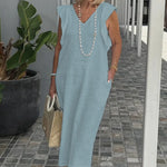 De Ramèl™ Comfortabele Zomerjurk biedt ultiem comfort en stijl. Gemaakt van hoogwaardig, ademend katoen, deze jurk houdt je koel en fris. Draag het casual met sandalen voor een relaxte look of stijl het met hakken en accessoires voor een formele uitstraling.
