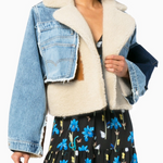 Deze unieke jas combineert denim met een warme sherpa voering en opvallende leren details. De contrasterende stoffen en kleuren zorgen voor een gedurfde, trendy look, terwijl de korte pasvorm perfect is voor een casual-chique stijl. Ideaal voor frisse dagen waarop je zowel warm als stijlvol wilt blijven.
