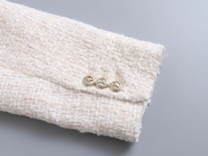 • Pasvorm: Getailleerd met een klassieke double-breasted sluiting