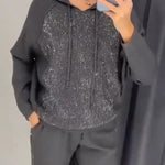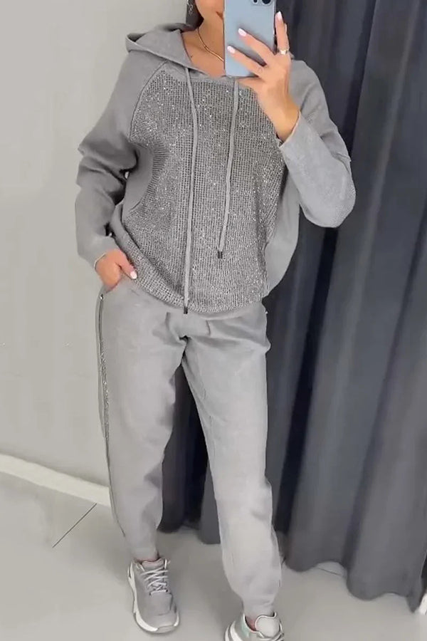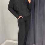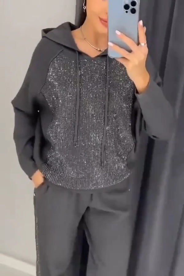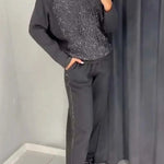 Het stijlvolle ontwerp met glanzende details maakt deze set een unieke aanvulling op je garderobe. Perfect voor een ontspannen dag of een casual uitstapje.