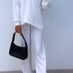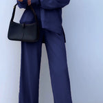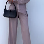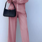 Met het eenvoudige maar modieuze design is deze set perfect voor zowel relaxte als stijlvolle gelegenheden. Draag hem thuis of voeg accessoires toe voor een casual-chique outfit.