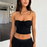 Stijlvol Ontwerp: De ruches en het strikdetail geven de crop top een speelse en trendy uitstraling. Perfect voor een casual dagje uit of een zomers feestje.