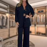 Met onze kleding set hoef je je geen zorgen meer te maken over wat je aan moet trekken. De veelzijdige combinatie van blouse en wijde broek biedt eindeloze mogelijkheden. Geschikt voor diverse gelegenheden. Voel je zelfverzekerd en stijlvol elke dag opnieuw!