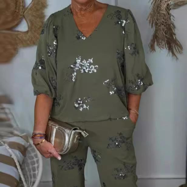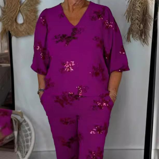 "De Dames Sequin Set is mijn favoriete zomeroutfit geworden! Zo comfortabel en stijlvol. Zeker een aanrader!"