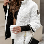 Deze elegante jas houdt je niet alleen warm, maar voegt ook een vleugje klasse toe aan je dagelijkse look. Met een diamantdesign en comfortabele pasvorm, blijf je zowel modieus als beschermd.