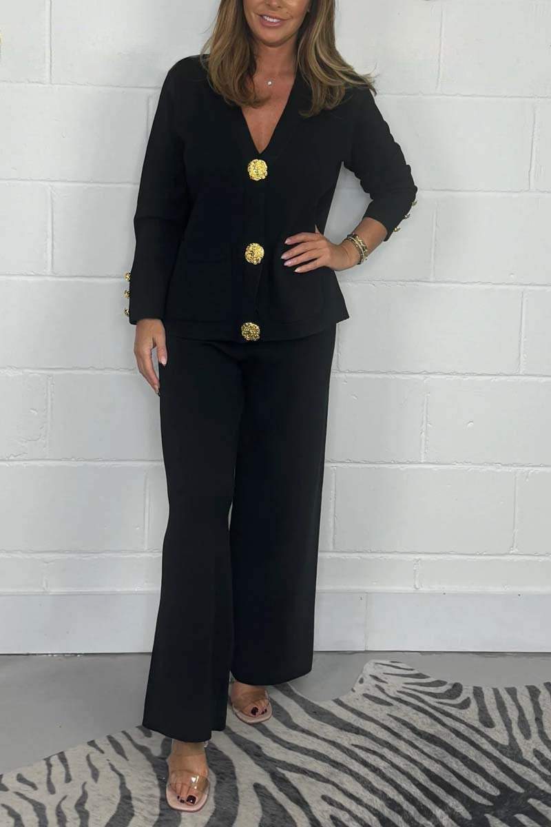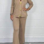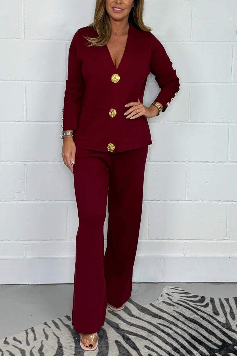 Onze set biedt een kant-en-klare oplossing voor alle drukke vrouwen die geen tijd willen verspillen aan het bedenken van de juiste combinaties. Het V-hals ontwerp voegt een subtiele flair toe.