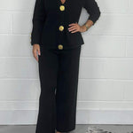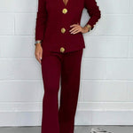"Ik ben zo blij met dit pak! Het is super comfortabel en perfect voor een casual dag op kantoor. De V-hals geeft het dat beetje extra flair zonder overdreven te zijn. Iedereen moet dit hebben!"