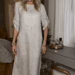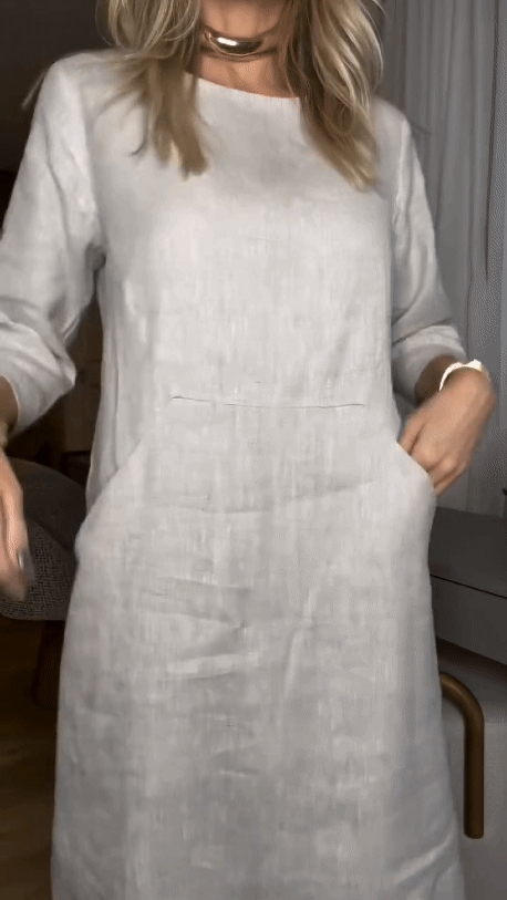 De combinatie van linnen en katoen maakt deze jurk ongelooflijk luchtig en comfortabel, ideaal voor warme dagen. De stijlvolle pasvorm zorgt ervoor dat je er altijd chic uitziet, terwijl de praktische steekzakken je voorzien van extra gemak. Perfect voor elke gelegenheid, van stranddagen tot chique evenementen.