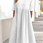 Deze Norah™ Stijlvolle Zomerjurk is de perfecte keuze voor elke gelegenheid. Of je nu naar kantoor gaat of een dagje uit plant, deze jurk biedt zowel elegantie als comfort. Dankzij het losse ontwerp en de drapering kun je je vrij bewegen terwijl je er chic uitziet.