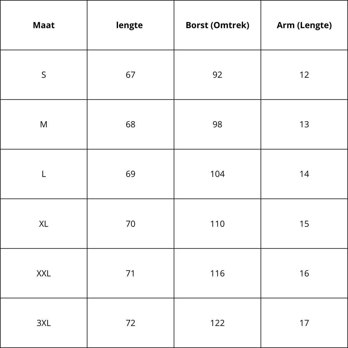 Maattabel (CM)