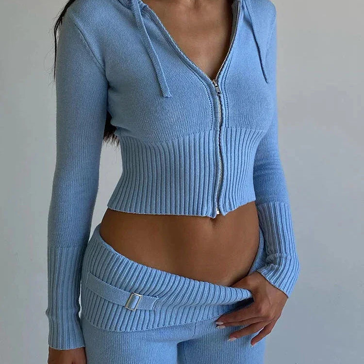 Gebreide™ Lounge Set | Hoodie & Flared Broek | Zachte Stretch Stof