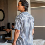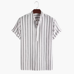 Charles | Gestreept Heren Zomer Linnen Overhemd met Staande Kraag