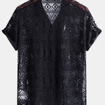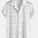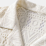 Het David-haakshirt verenigt casual streetstyle met kunstzinnige ambachtelijke esthetiek. Gemaakt van een luchtige haakstof in hoogwaardige polyester-blend, biedt dit shirt maximale ademend vermogen met een vleugje extravagant. De stof is bewust transparant en toont een complex geometrisch ethno-patroon dat doet denken aan traditionele textielkunst – bestaande uit ruiten, lijnen en ornamentale details in verfijnde uitvoering.