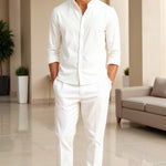 Klassiek staande kraag overhemd in het wit