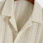 Dit stijlvolle haakshirt is de perfecte keuze voor een ontspannen, maar toch elegante look. Het fijne gaatjespatroon geeft het shirt een luchtige, zomerse uitstraling, terwijl de klassieke kraag en de knoopsluiting zorgen voor tijdloze elegantie. Of je nu op het strand bent, een stadswandeling maakt of voor een casual avond gaat – dit shirt is een echte blikvanger.