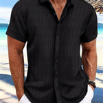 Het Owen-Zomerhemd combineert klassieke coolness met moderne verfijning. Gemaakt in een diepe zwarte tint, verrast het met zijn fijne verticale streepjespatroon, dat het hemd structuur en elegantie geeft. De ton-sur-ton strepen zijn subtiel en stijlvol, waardoor het hemd zowel casual als chic gedragen kan worden - perfect voor strand, stad of avondlijke zomer-dates.
