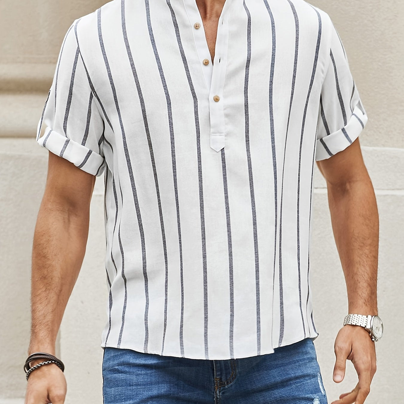 Samuel | Korte mouwen Henley zomerhemd met streepmotief