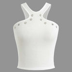 Darlene | Witte Geribbelde Tanktop met Cut-Outs & Nieten