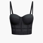 De Ida Bustier-top combineert sensuele elegantie met moderne chic en is het perfecte statement-piece voor stijlvolle outfits. De gewatteerde beugelcups bieden optimale ondersteuning en vormen een flatterende silhouet, terwijl de transparante mesh-structuur met markante naden een spannende contrast creëert tussen elegantie en verleidelijkheid. De verstelbare banden zorgen voor een individuele pasvorm, zodat de top zowel als stijlvolle avondmode als trendy layering-piece kan worden gedragen. Perfect voor feestlooks, elegante straatstijlen of als sexy statement onder blazers en jassen.