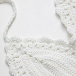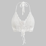 Nora | Witte Handgehaakte Boho-Crop-Top met Halter en Verstelbare Bindbanden