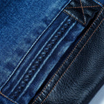 Dit jack is een statement piece dat moeiteloos te combineren is met verschillende outfits. De combinatie van denim en leer zorgt voor een tijdloze en stoere look.