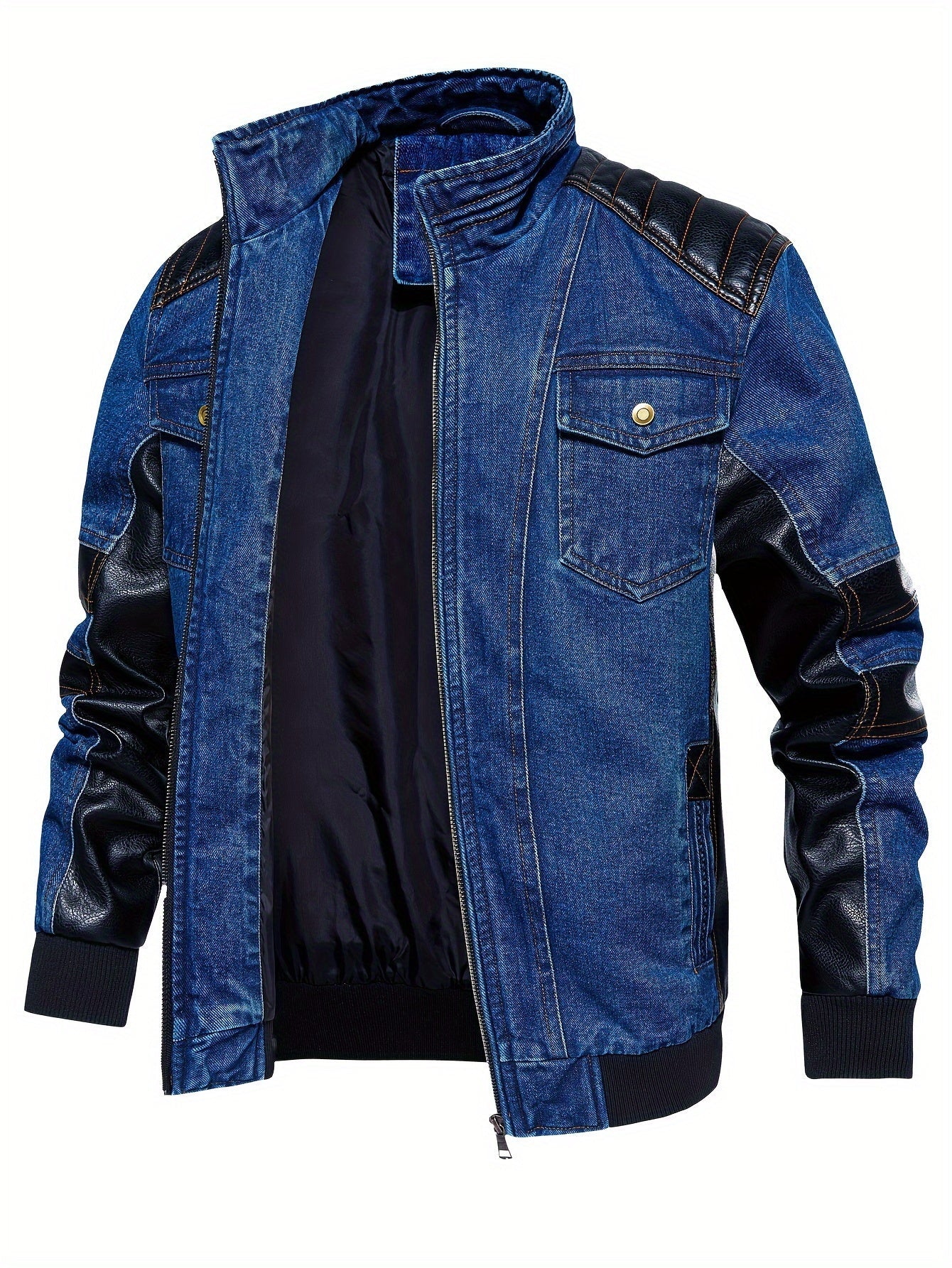 Stoer Spijkerjack met Leren Details en Motorstijl