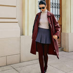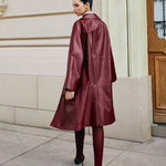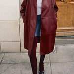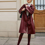 De Elena mantel brengt tijdloze elegantie in uw garderobe. Met zijn diepe bordeauxafwerking en minimalistisch ontwerp is hij de perfecte keuze voor vrouwen die een chique en moderne uitstraling verkiezen.