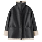 Lizzy | Oversized Kunstleer Shearling-Jack in Zwart