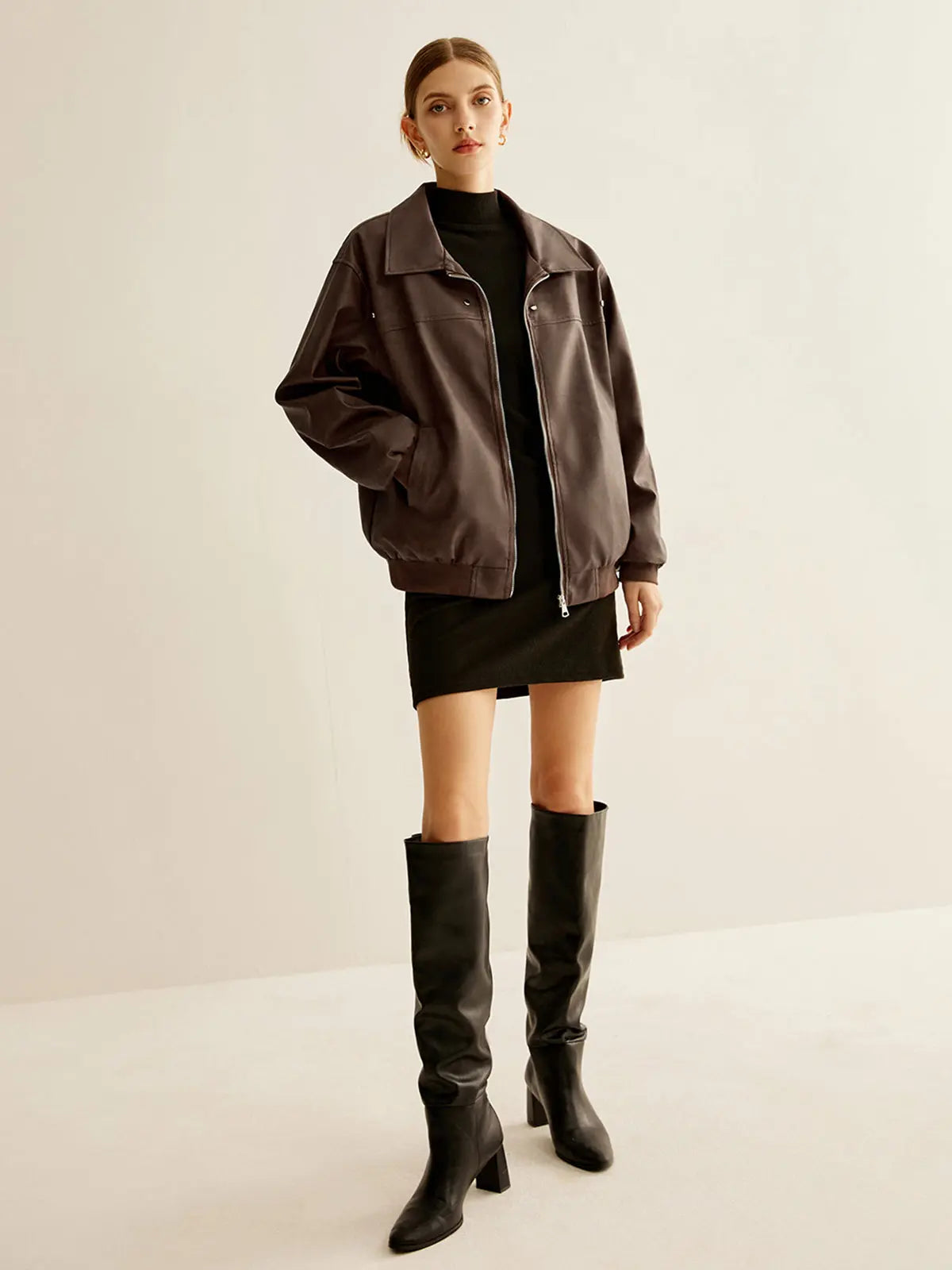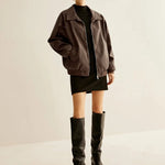 De Mila Rits-Leren Jas in Shift-stijl verenigt een elegant ontwerp met moderne charme. Deze jas heeft duidelijke lijnen en een minimalistische, maar opvallende silhouet die zowel geschikt is voor de dagelijkse gang van zaken als voor speciale gelegenheden. De asymmetrische rits en de Shift-snede geven de jas een frisse, stedelijke uitstraling, terwijl het hoogwaardige leer zorgt voor een luxueuze look.