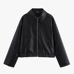 Deze stijlvolle kunstlederen jas in een rijke wijnrode tint verenigt modern design met een tijdloze silhouette. De klassieke rits en de elegante kraag maken het een veelzijdig kledingstuk voor verschillende gelegenheden.