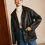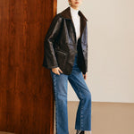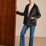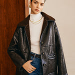 Sofia | Zwarte leren jas met teddyvoering
