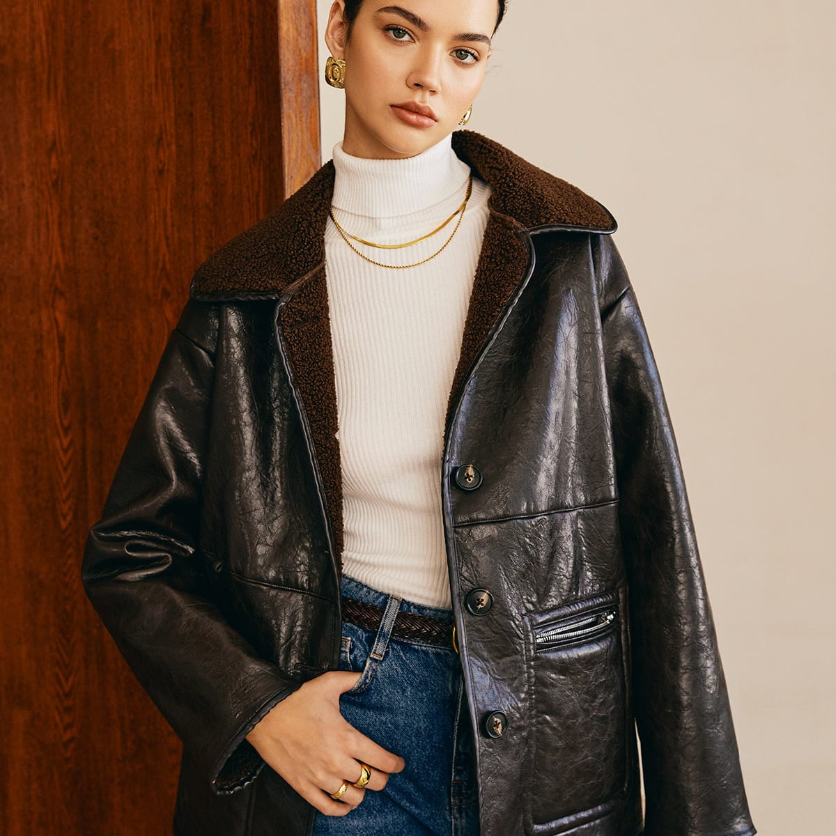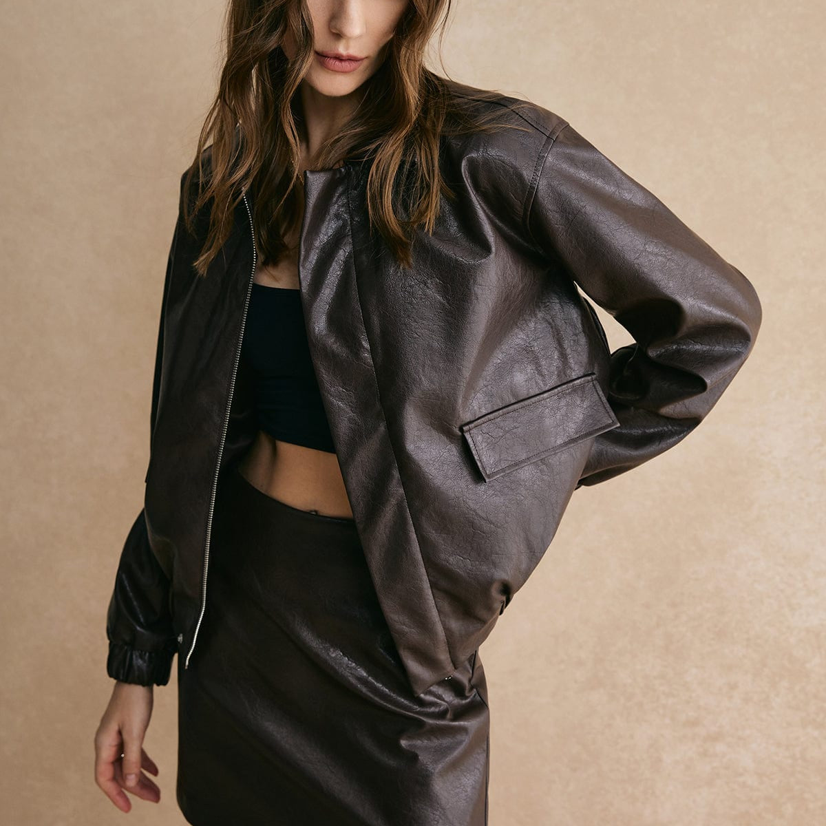 Elena | Trendy Leren Bomberjack – Modern & Casual